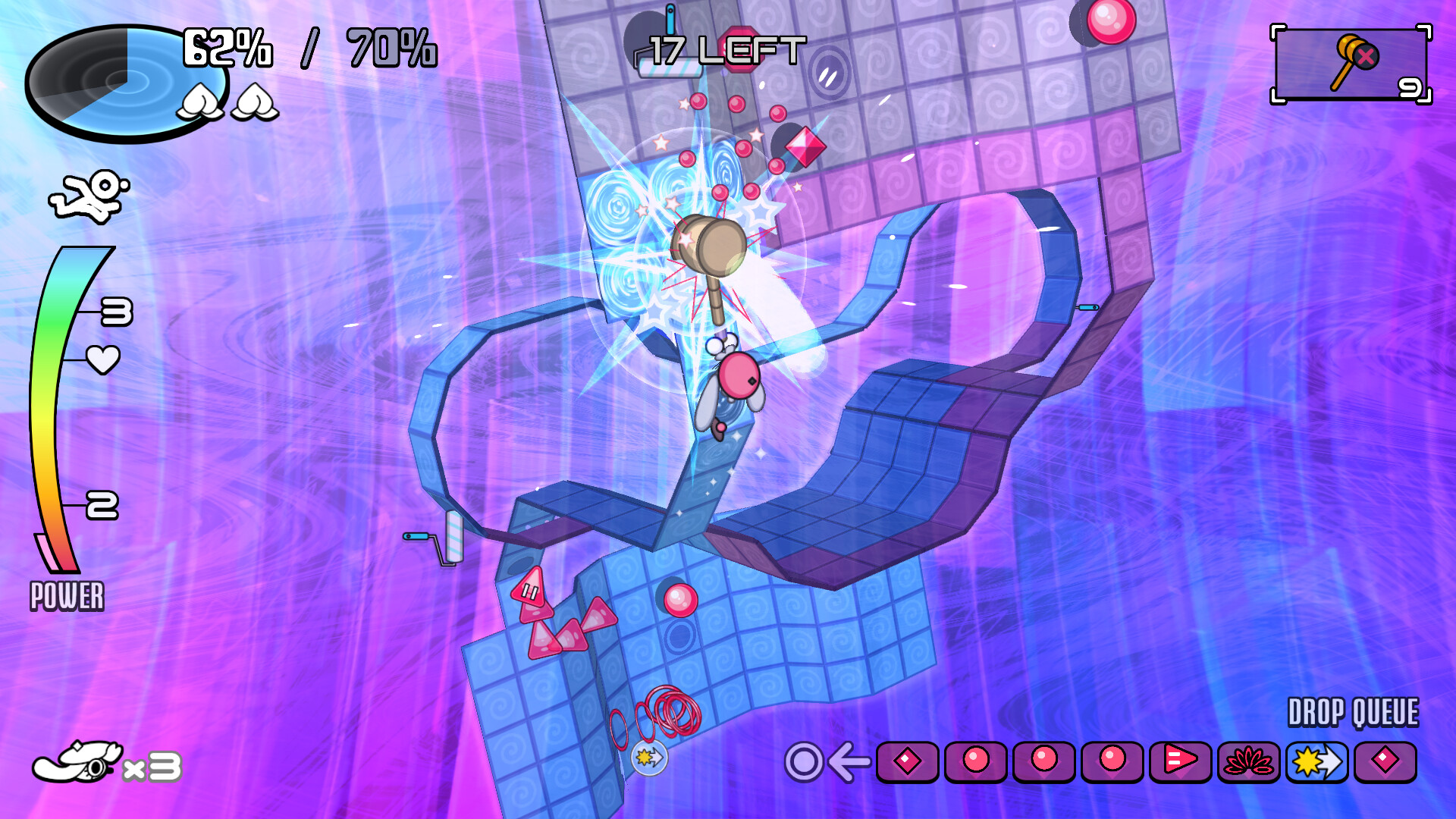 IT’S A COLOR FRENZY – paint the target % of tiles and clear the stage!